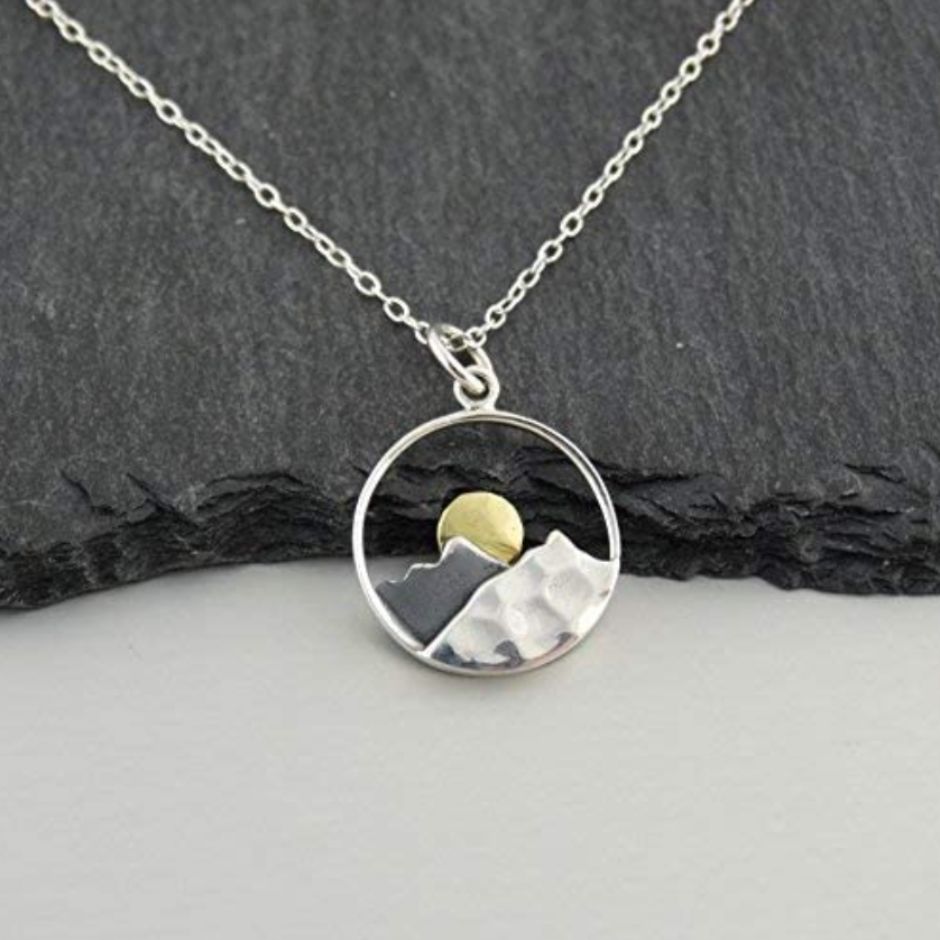 Inspired from our love of nature, this mountain necklace will remind you of your favourite place. Layers of durable alloy mountains with a glowing sun peeking out. This necklace is perfect for anyone who loves to ski, hike, camp or just enjoys the great outdoors.